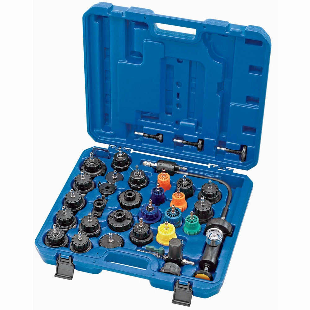The Draper 23420 Expert 33 Piece Radiator and Cap Pressure Test Kit is designed for pressure testing radiators of most popular vehicles, as well as also being able to pressure test radiator caps for leakages. 33 colour coded adaptors allow direct connection to radiator or expansion tank.
