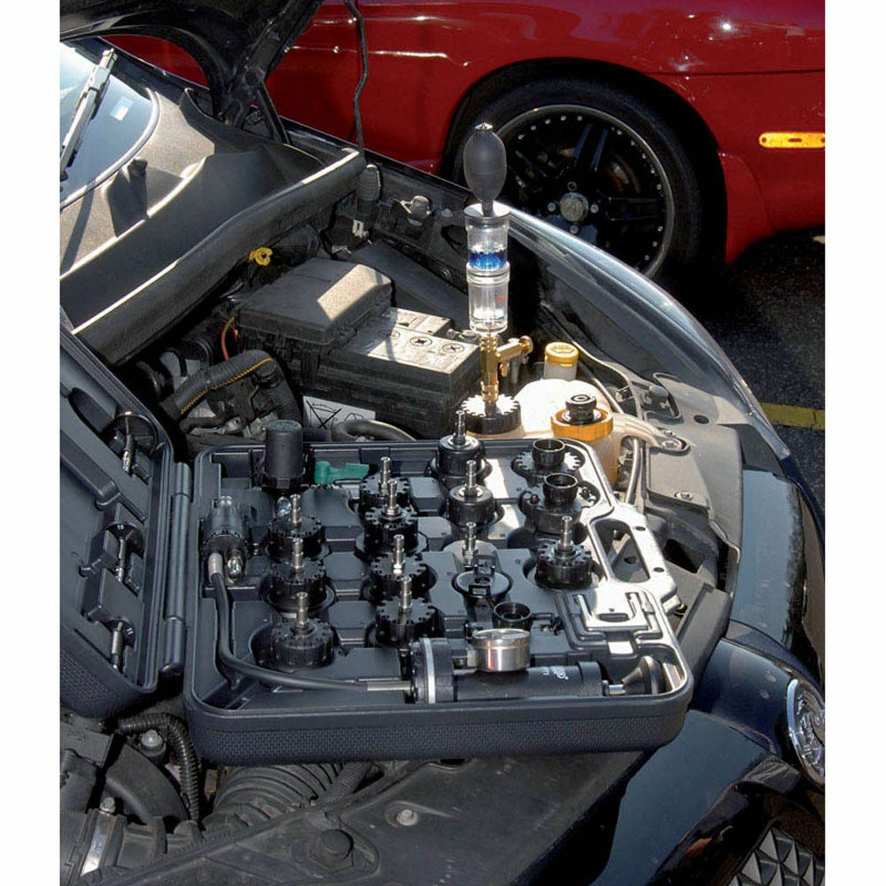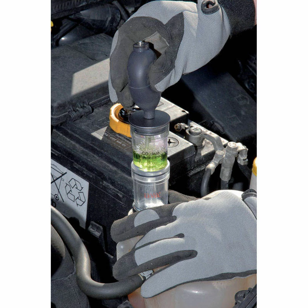 This Draper Combustion Gas Detector Kit is ideal for determining if CO² is present in a vehicle’s cooling system. CO² in the cooling system can indicate a head gasket leak, cracked block or a warped head, etc. Simple to operate by adding blue detector fluid to the tester and placing tester onto the radiator; air is drawn through the liquid which will change colour to yellow if CO² is present. Supplied with detector fluid.