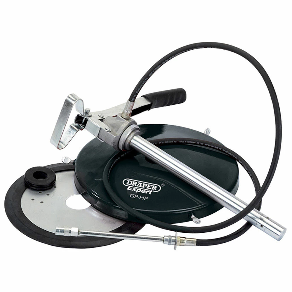 This Draper high-pressure hand grease pump provides high pressure greasing when power is not available, making it ideal for site use in construction, agricultural and remote locations.