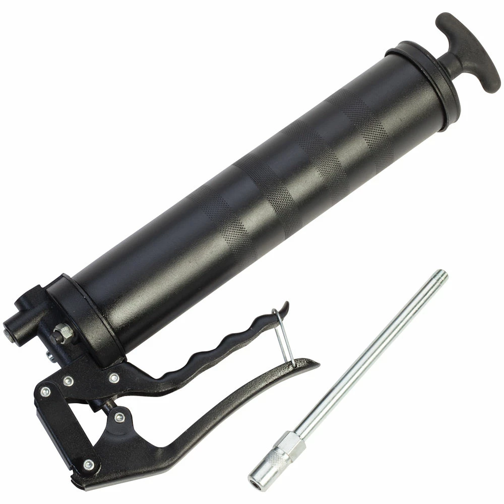 The Lumeter A1024S is a pistol grip grease gun with 500cc bulk fill or 400g cartridges. Straight extension tube & 4 jaw coupler.