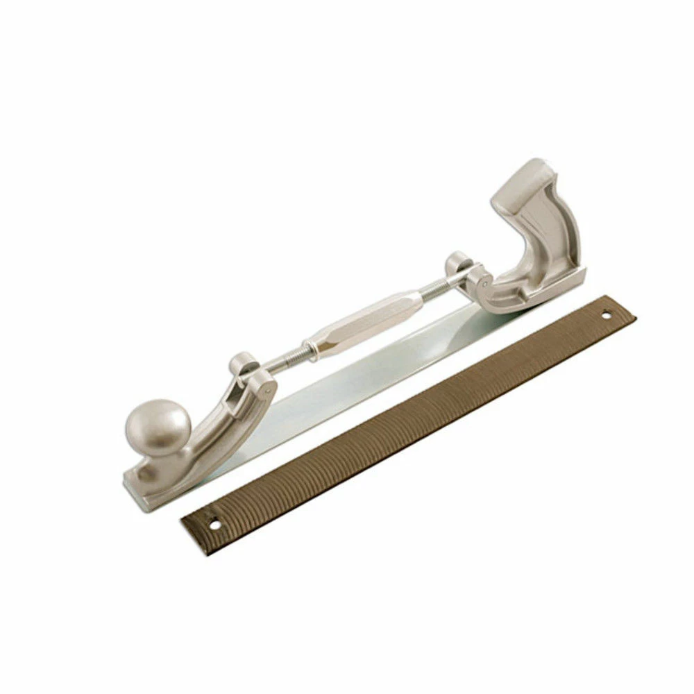 A durable aluminium and steel plate body file holder and file combination, that can be bent to convex and concave angles, or left flat, perfect for use on a wide range of body panels, curved or flat.