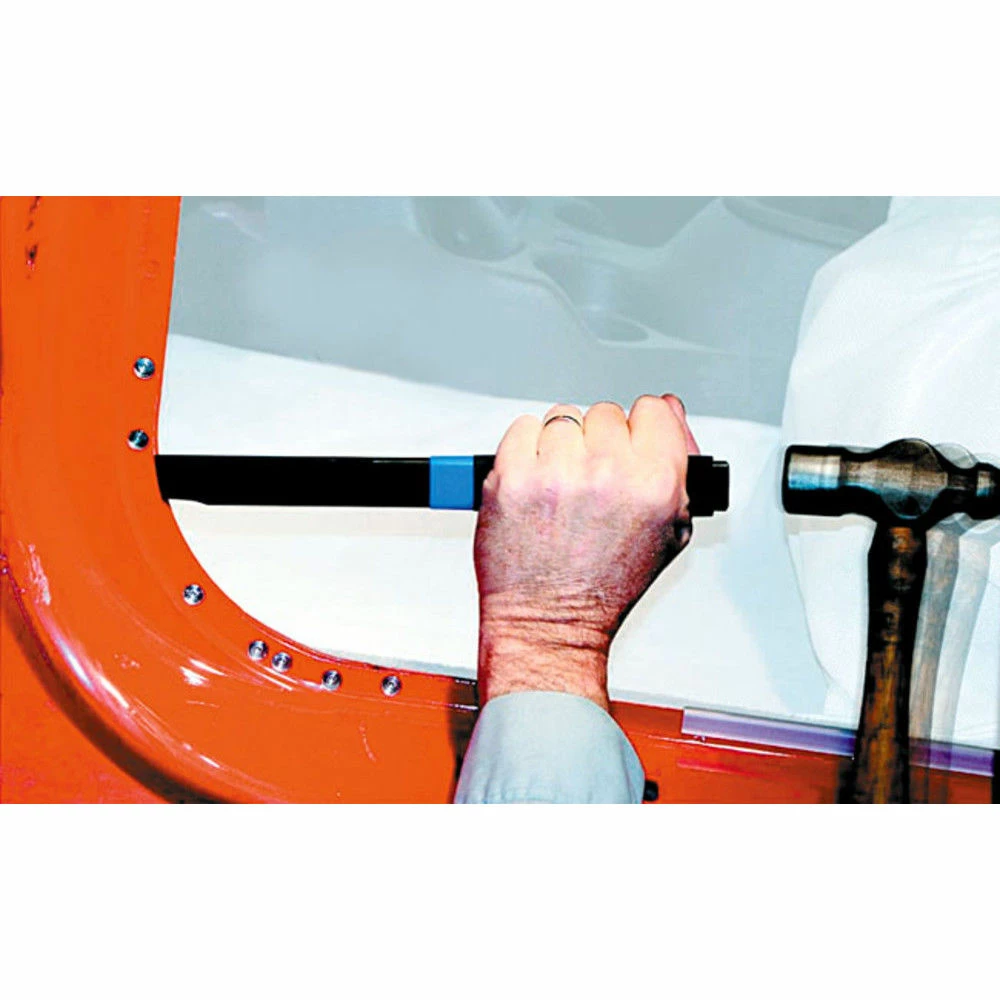 Sharpened on two edges, this steel alloy splitter is manufactured to allow for impact to drive body panels apart without damaging them, allowing for an easier to complete and less expensive bodywork repair. Releases body panels quickly, easily and importantly, safely too, with little mess and fuss.