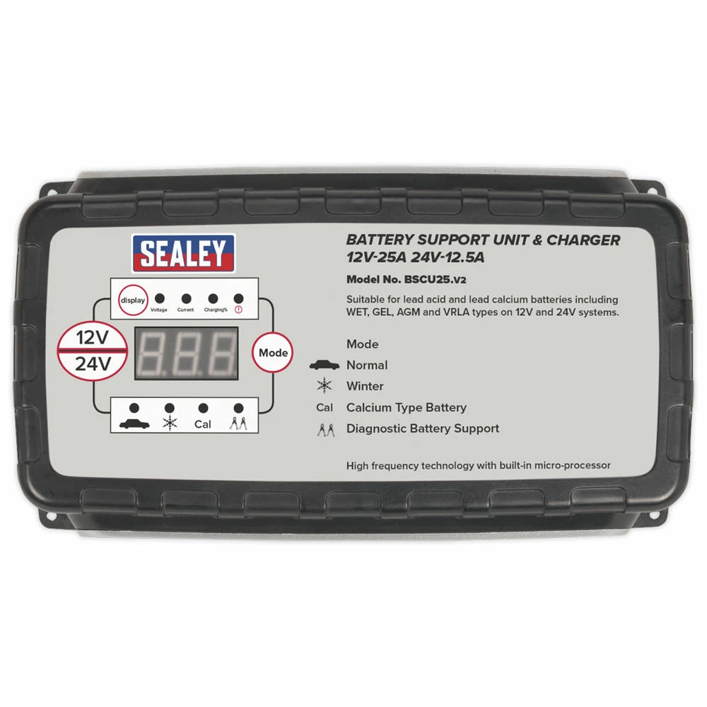 Sealey BSCU25 Battery Support Unit & Charger 12V-25A/24V-12.5A